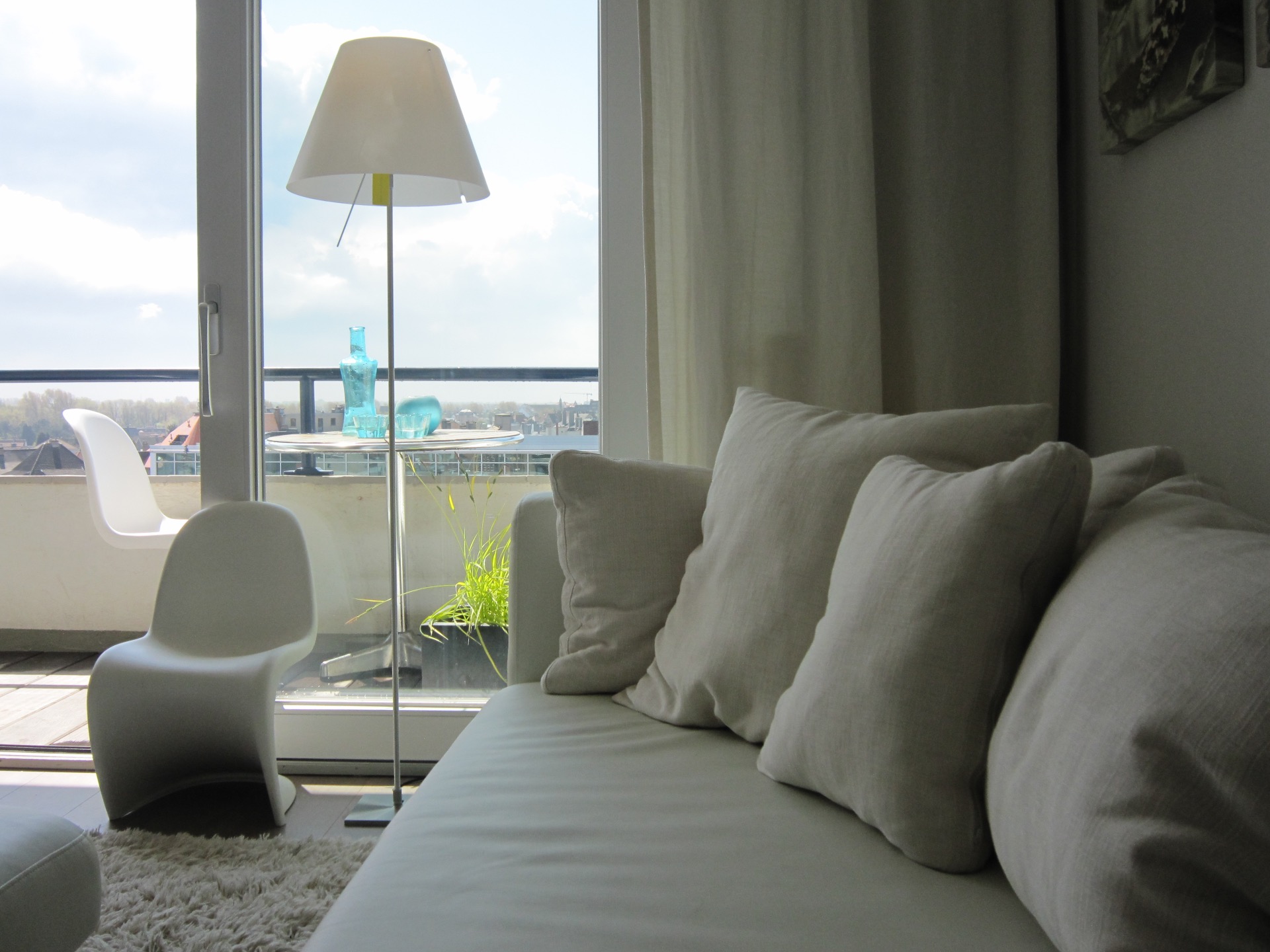 Je zit op de zesde verdieping, geen inkijk mogelijk en bovendien een schitterend open zicht op het hinterland, van Koksijde over Noord-Frankrijk tot Veurne en op de kustlijn...
